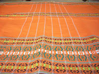 hiasan dibuat dengan menyisipkan benang perak, emas atau benang warna di atas